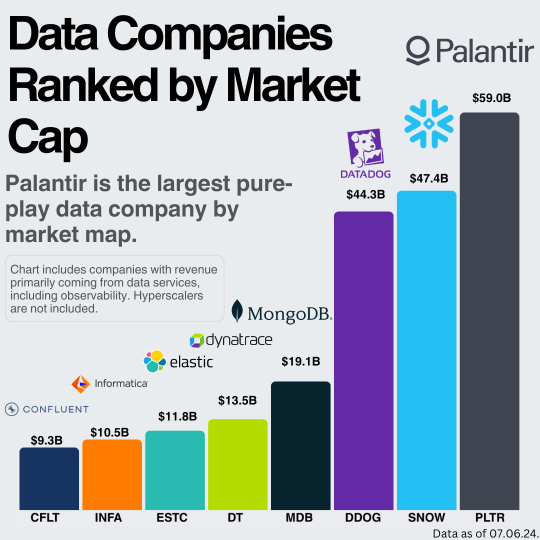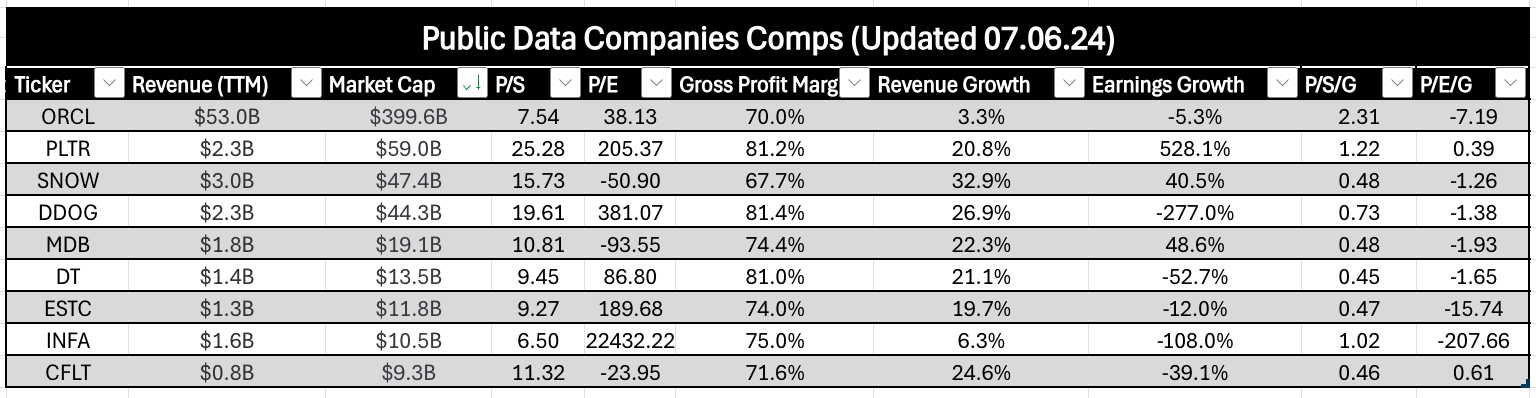 Finally, despite not having much public data, we can gather some information by examining pure-play data companies as a whole (Note: only Mongo is directly a database company here).