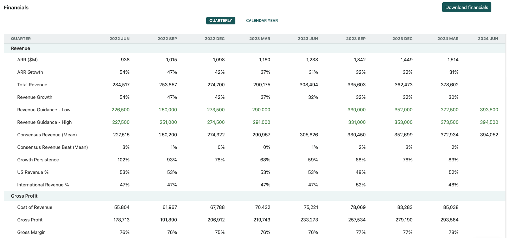 For individual companies like Cloudflare, we can see data like revenue, margins, and NRR: