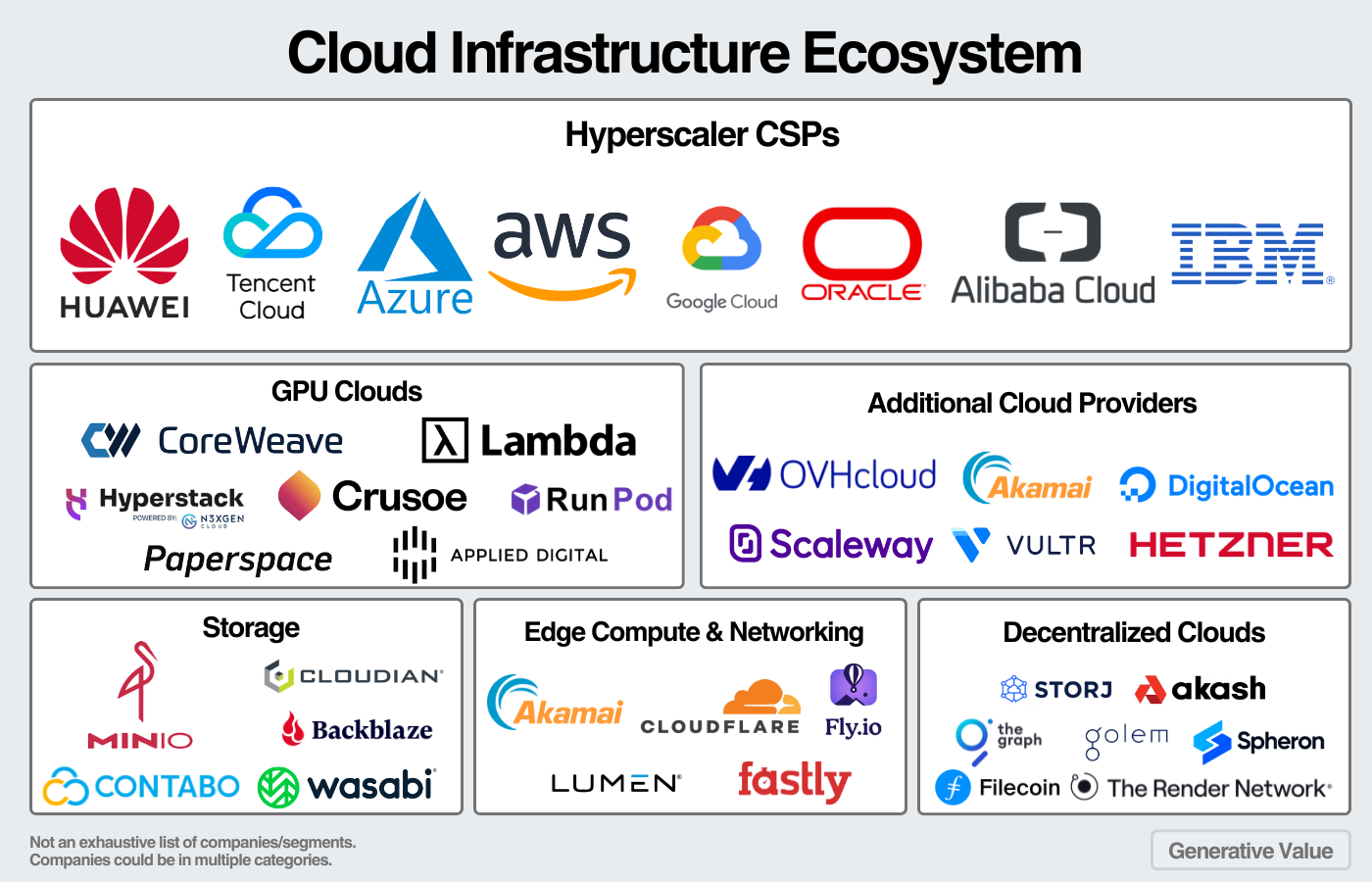 - GPU Clouds - companies renting out GPUs and other AI-focused cloud infra.