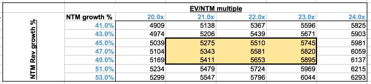 On an EV/NTM revenue basis, I think the IPO will push multiples higher than normal, but I see SMAR's valuation (5.7B today at a 12-13x NTM rev multiple), which is doing about 2x more in ARR, and still growing at a decent pace (334M ARR, 41% growth yoy) as a ceiling for Asana. Asana's IPO will likely boost SMAR's valuation as well, so I think its possible Asana opens trading at a multiple in the 20-24x range, and could push even higher due to the limited float. This would give Asana a valuation of ~$5.5B, a slightly lower estimate than others have predicted.