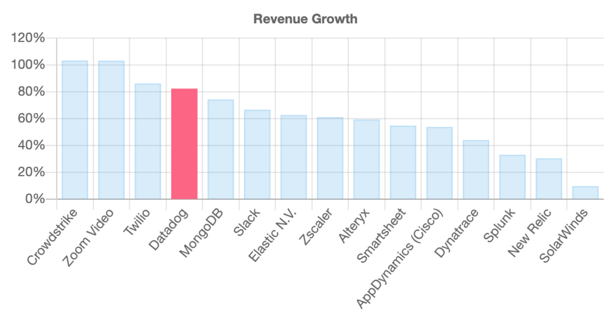 Growth Rate: At 82% year-over-year ARR growth, Datadog is the 4th Fastest-Growing Public SaaS company and fastest growing DevOps company.
