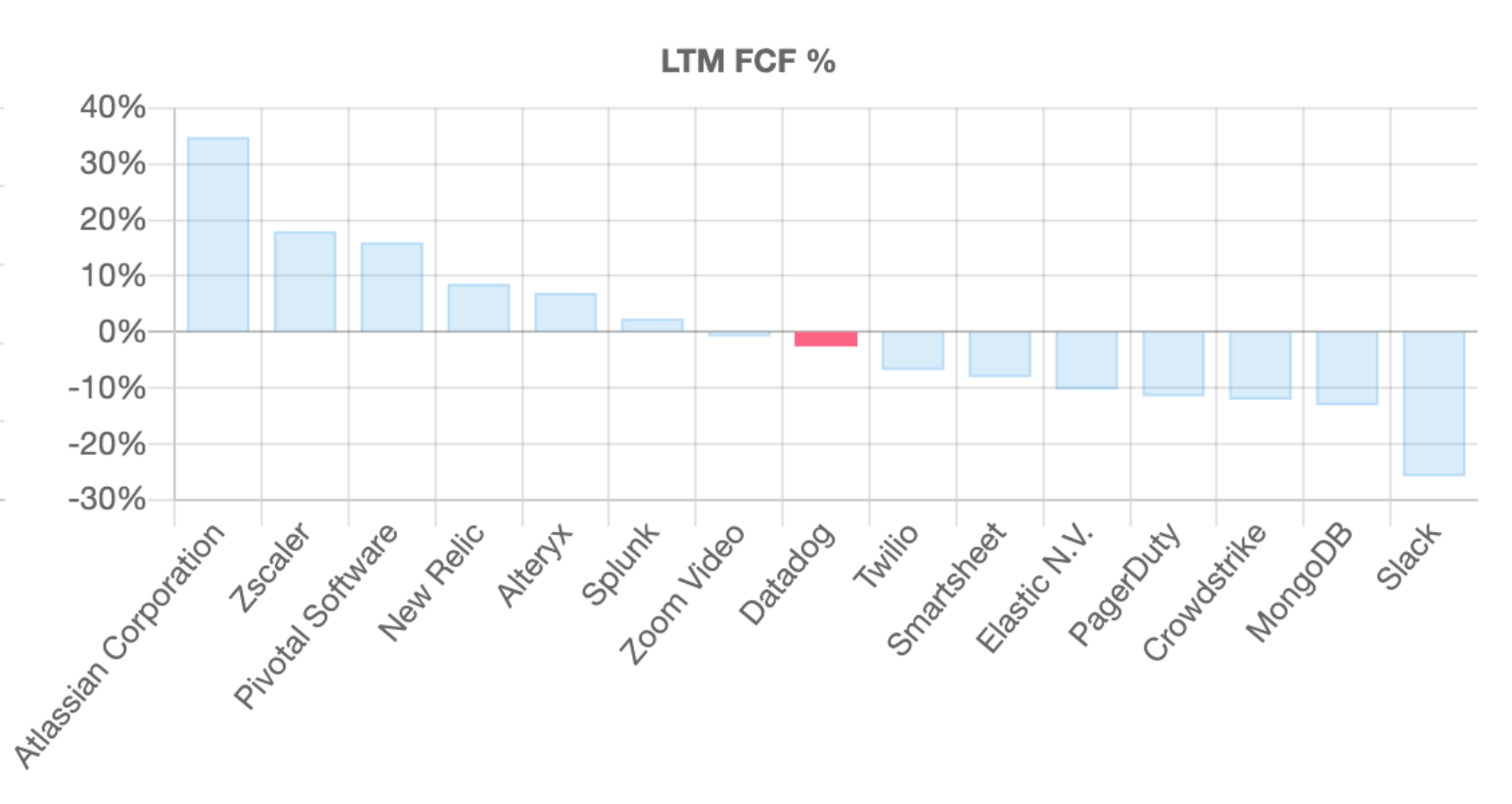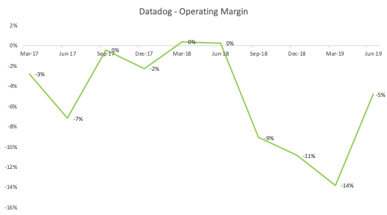 While Datadog is still not yet profitable (-5% operating income margins in most recent quarter June 30th, 2019), Datadog is effectively cash flow break-even at ~-4% free cash flow margins and even generated $6m of free cash flow in CY2017.