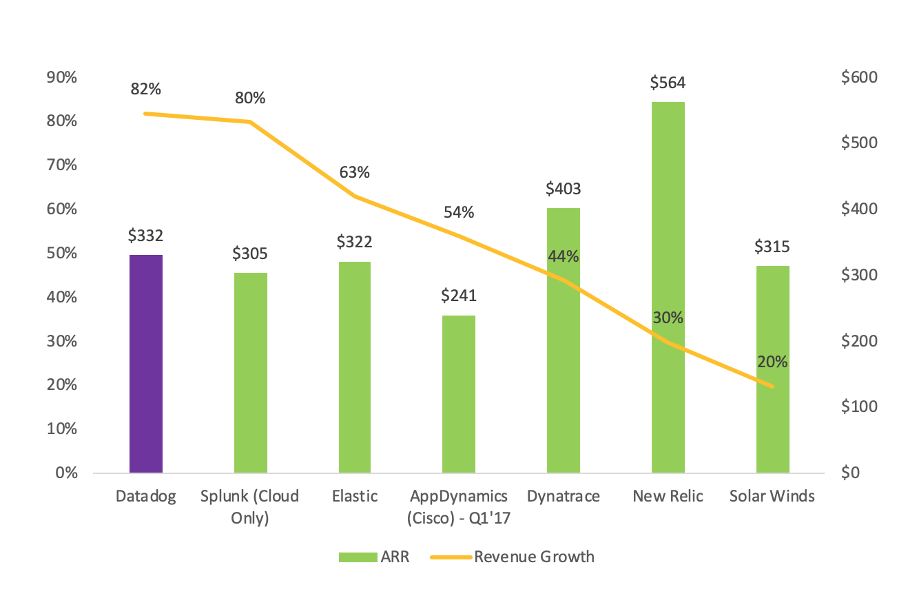 It’s worth noting that Datadog is growing more quickly than most of its public market SaaS competitors particularly Elastic, Appdynamics (acquired by Cisco), Dynatrace, Splunk, New Relic and Solar Winds.