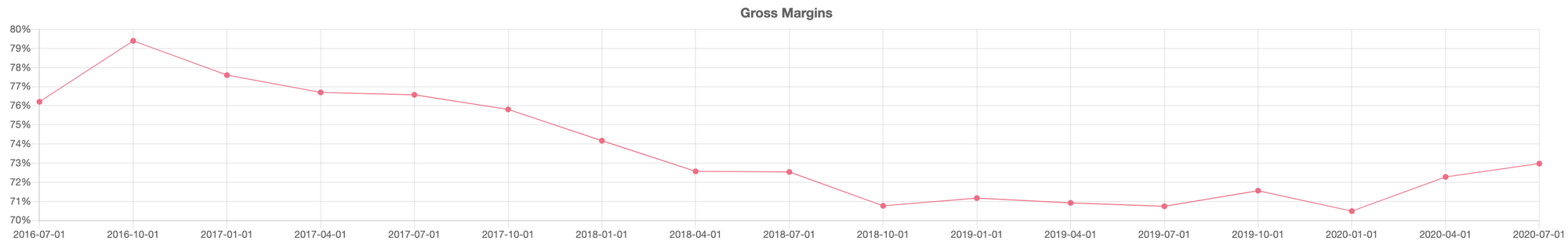 Gross margins have been increasing as well, trending upward for the last few quarters.