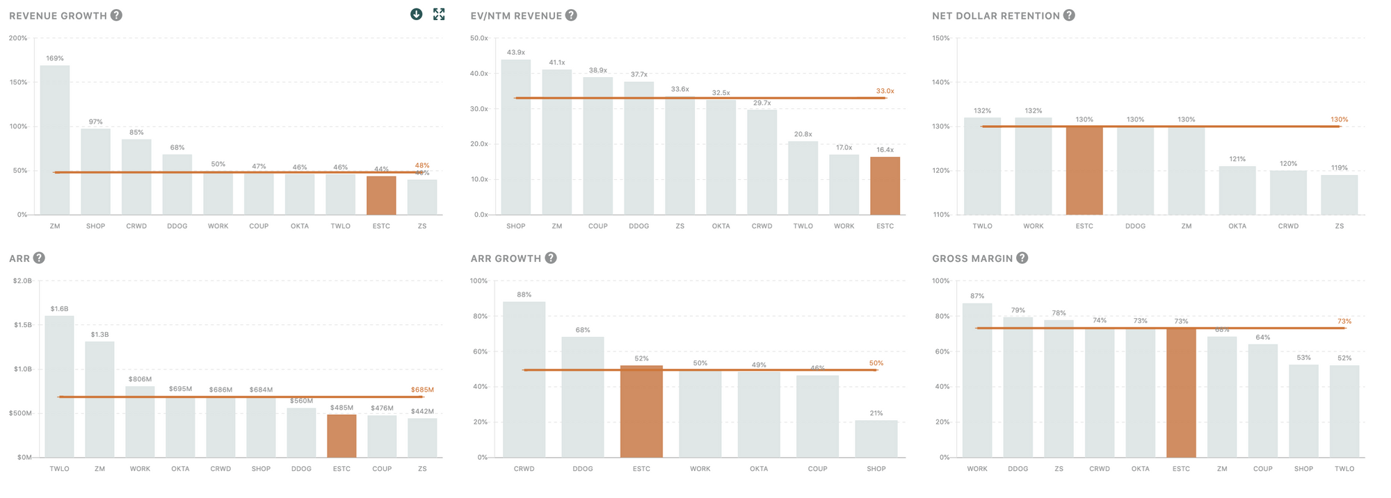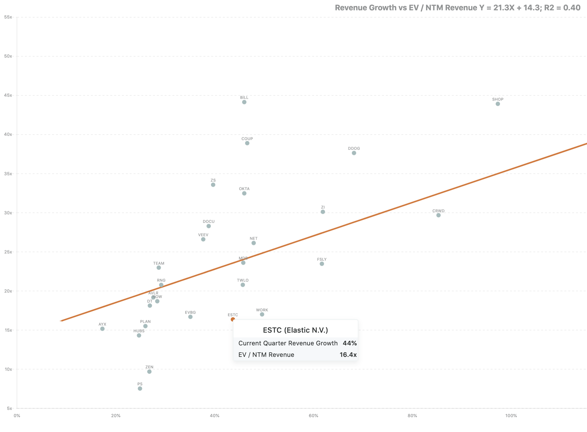 Elastic is only trading at 16.4x EV / NTM revenue, which is cheap relative to other companies with a similar growth rate.