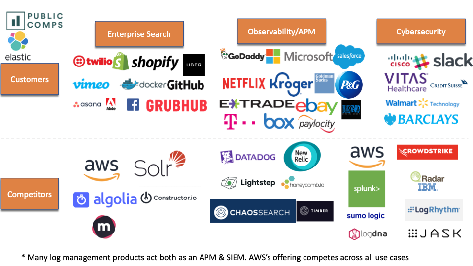 The horizontal utility & open source nature of Elastic invites a large number of competitors across its use cases. While their open source model provides great distribution, it allows AWS to cannibalize their market. AWS is the hosting infrastructure themselves so they can charge a cheaper rate. More specialized software companies for all verticals are growing quickly, both in the private & public markets.