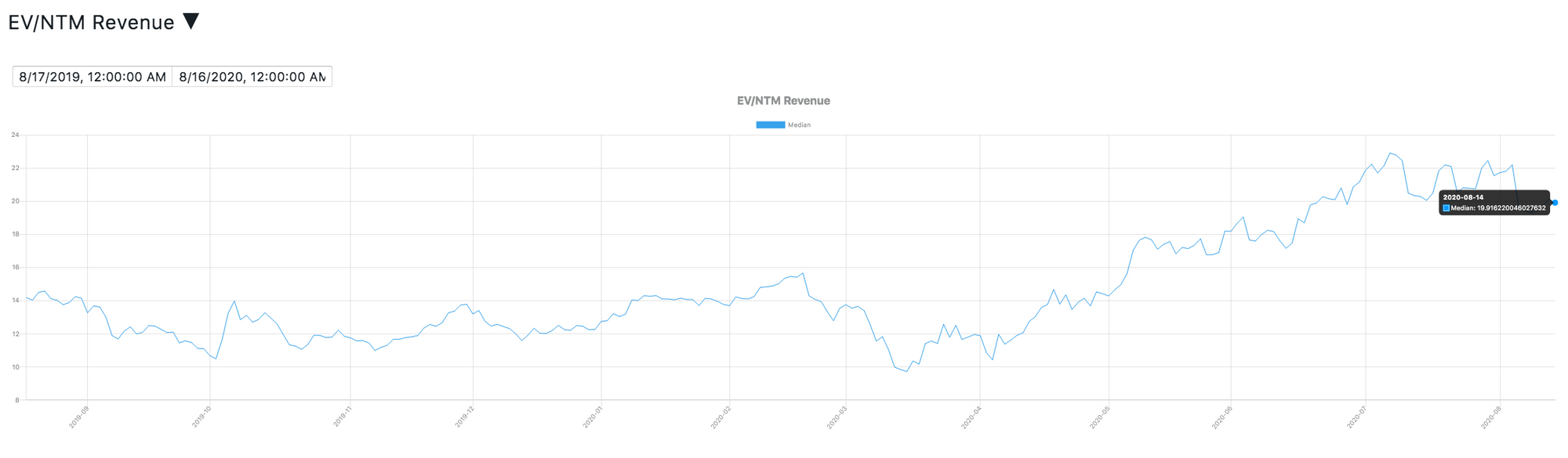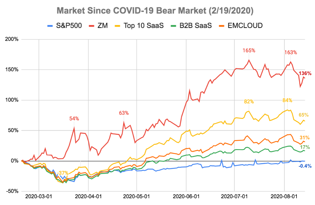 SaaS markets: This week saw some more correction to high SaaS valuations. While digital transformations have been accelerating, not all SaaS companies are benefiting in the same way: category leaders are grabbing more market share than they used to; as historically, software markets were far more fragmented than they are today. These larger cloud category leaders also benefit disproportionately from better unit economics and scale in order to maintain operating leverage during COVID-19.