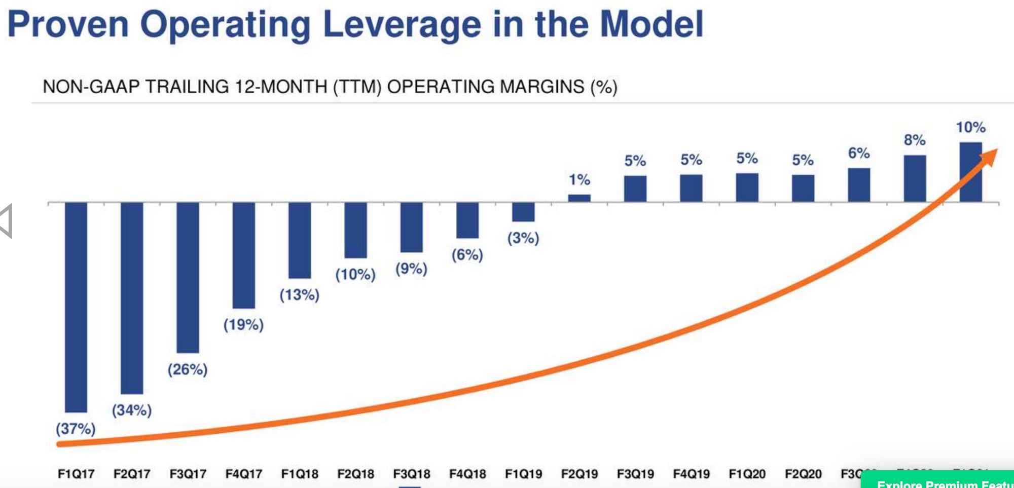 - Continued margin improvement: network effects from ecosystem growth help scale S&M margins and gross margins will improve as service revenue diminishes as a portion of new revenue.