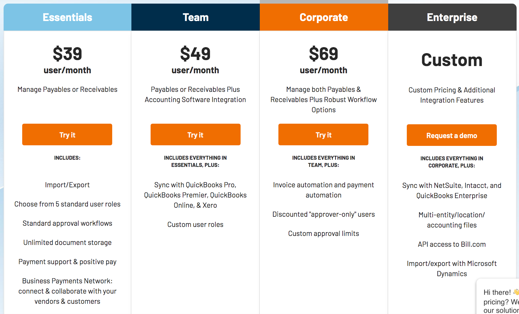 - Easily deployable: BILL's platform is a self-service product, and doesn't require an implementation solution the way competitors do.