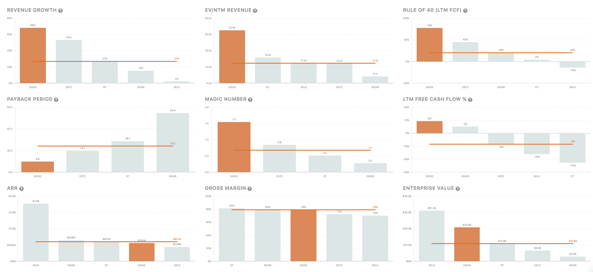 All of this is clear with a quick look at how Datadog stacks up against its competitors in the observability space: sales are more efficient with a better magic number and lower payback period, and its able to efficiently execute.