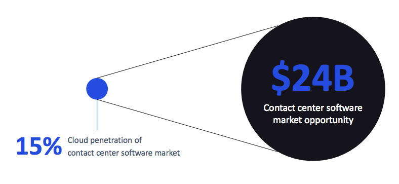 I generally pay little attention to TAM sizes, and think its both difficult & meaningless to try and quantify, with precision, an accurate value for something extremely large and growing; however, Five9 repeatedly cites their serviceable contact center software market to be 24B, of which they believe cloud has only penetrated 15%. More importantly, they believe theres a 234B obtainable market based on an additional $210B of contact center labor spend that they can further penetrate.