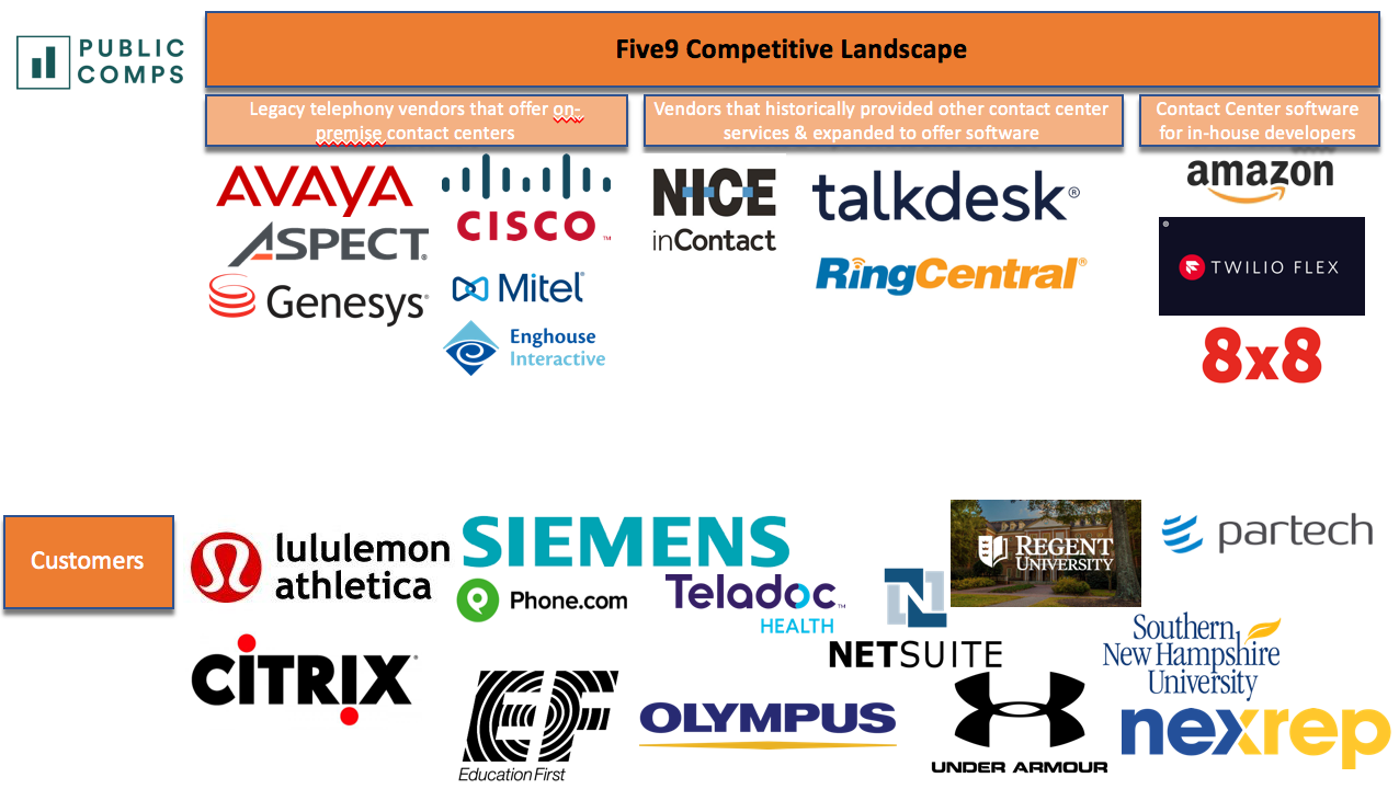 - Increased customization of contact center software through integration partners has lower friction and fast time to deployment. Despite typically longer sales cycles, Five9 is disproportionately benefited during the outset of COVID-19 as a large number of enterprises were forced to digitally transform, turning to cloud vendors and revenues will continue to accelerate as some deals were pushed out of the quarter.