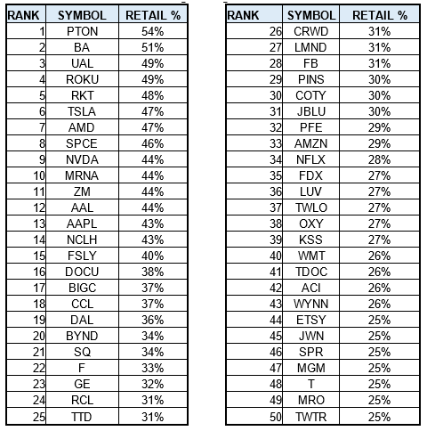 And it’s not just Gamestop, AMC, Blackberry – even before the recent run up in those stock prices, retail was already making up 25-50% of the flow of some names like Tesla (47%), Peloton (54%), Roku (49%), etc. The notion that retail investors only make a small percentage of the market and its mostly institutions moving the markets proved to be just wrong.