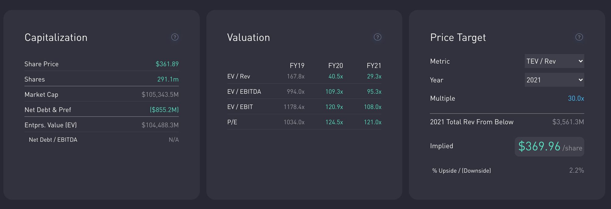 - Koyfin: We’re incredibly excited about companies like Koyfin that enable investors to get all the financial data and analysis they would need on public companies in one place and without having to open up Excel. For example, look at Microsoft in Koyfin -- you can see that Microsoft trades for ~30x PE and ~21x EV/EBITDA which seems quite reasonable given this environment and EPS growing 28% YoY!