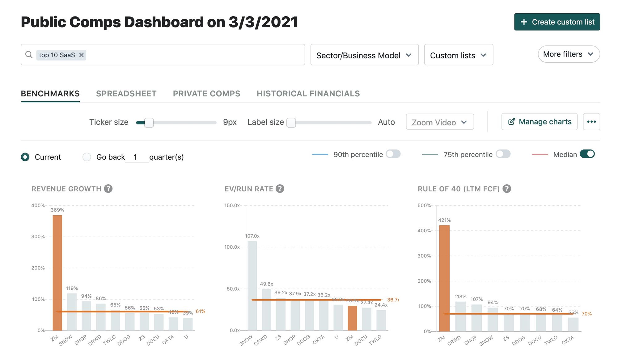 In fact, the motivation behind building Public Comps was to track and figure out what SaaS stocks to buy – at the time we were tracking our own personal portfolio in spreadsheets and manually calculating valuation multiples because as a personal investor I couldn't afford a Bloomberg terminal or CapIQ account.