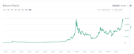 4. The run up in Bitcoin prices in 2020. Bitcoin is up 156% YTD