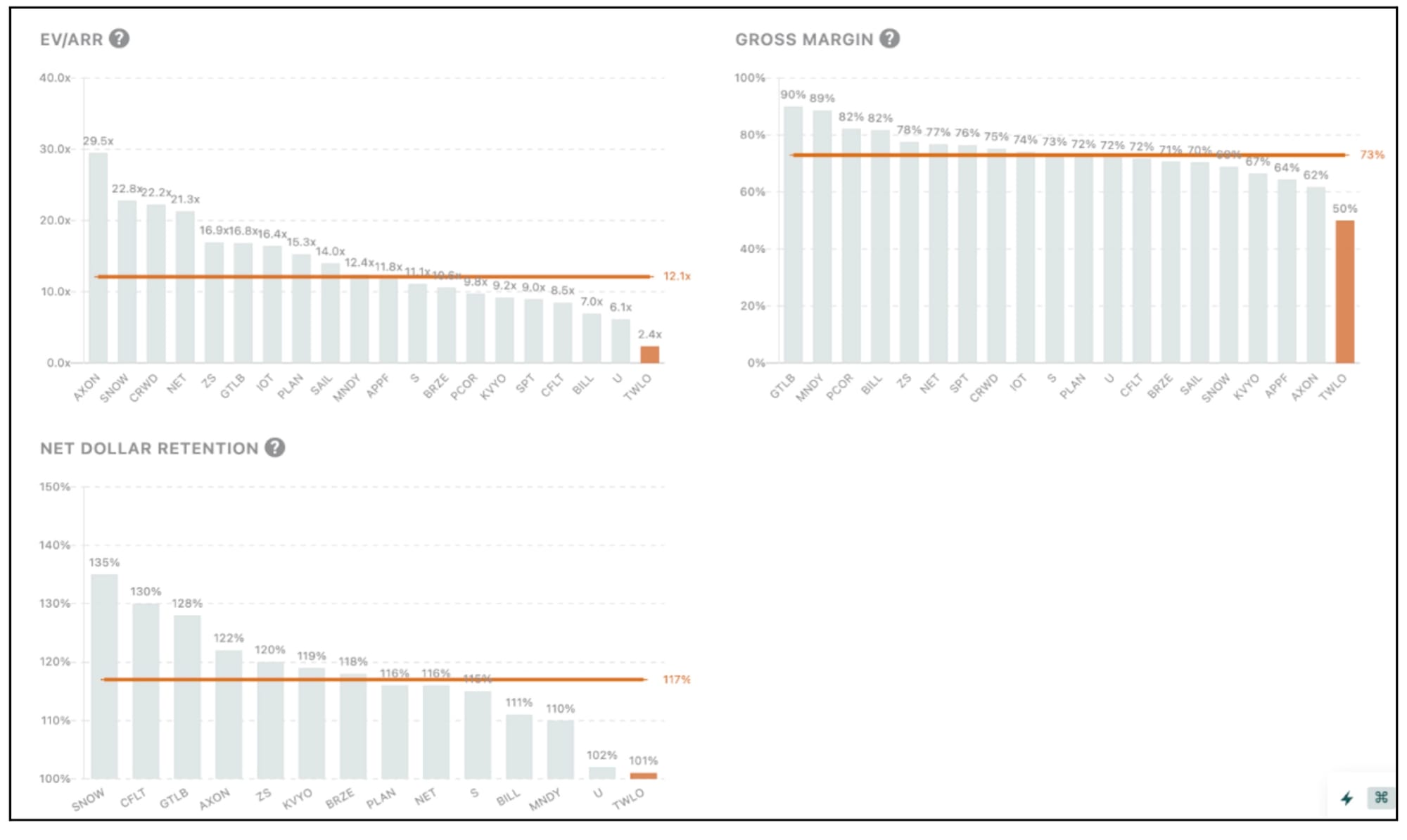 Views expressed in these emails are ours and ours alone and don’t represent that of our previous or current employers. Public Comps provides financial and industry information regarding public software companies as part of our weekly dashboard, our blog, and emails. Such information is for general informational purposes only and should not be construed as investment advice or other professional advice.