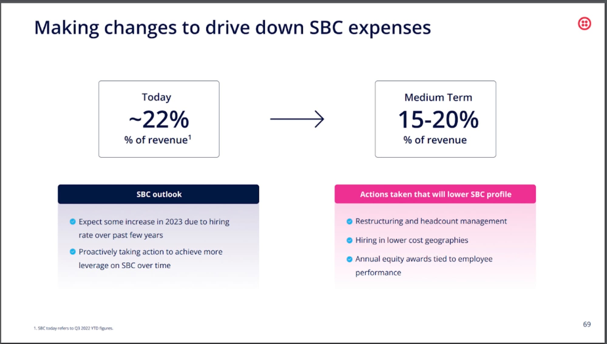 First, we expect a strong focus on profitability. Absent high growth, Twilio’s best play is to maintain discipline and cut costs. Since 2022, we’ve seen 3 rounds of layoffs, shrinking headcount by ~26%. As per their 2022 Investor Day presentation, Twilio focused on reducing opex by restructuring the business, layoffs, and shifting to “remote-first”, and we’ll see how much it paid off come February.