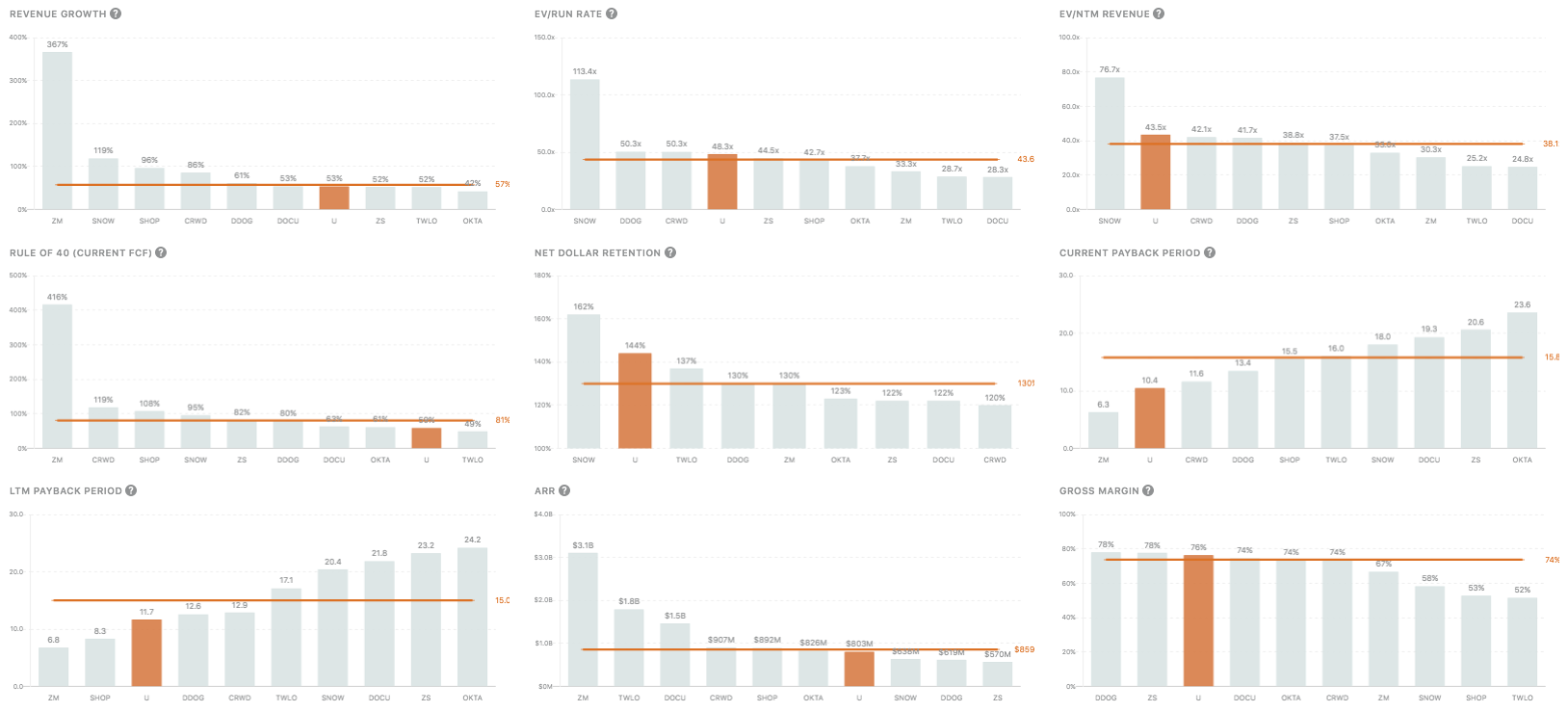 We've added Unity and dropped Elastic from the top 10 SaaS! Going forward, the top 10 SaaS basket is purely a discretionary call on our end. Our selection criteria for it are category leaders that stack up among the best-in-class SaaS metrics (net dollar retention, payback period, rule of 40).