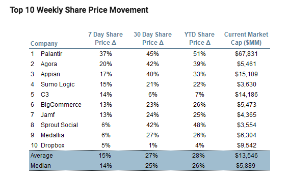This week saw many SaaS names drop, here are the top 10 weekly share price movements, courtesy of Jamin Ball: