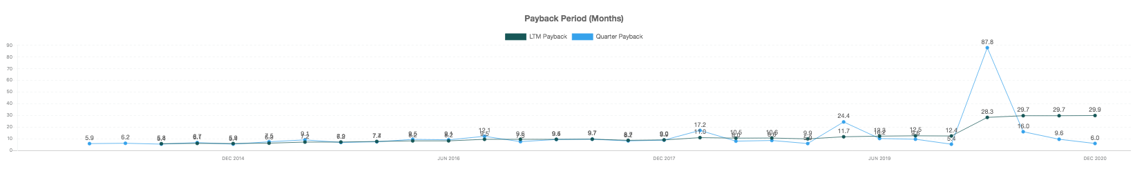 They've historically had one of the best payback periods, a strong sign of why first-mover advantage in developer tools that have network effects often wins.