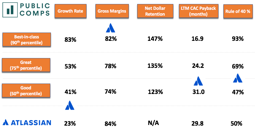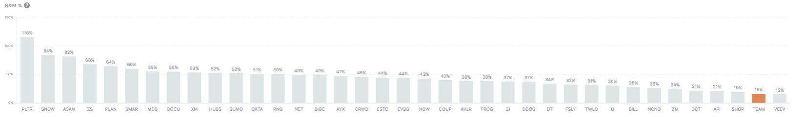 Atlassian is one of the most efficient B2B SaaS companies. Their 15% S&M margin (12.6% non-GAAP) is the lowest out of all public high growth SaaS!