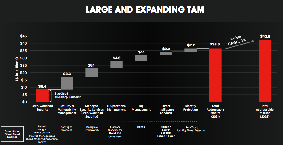 Crowdstrike has shown amazing ability to increase their TAM over time as they expanded into other verticals of security.