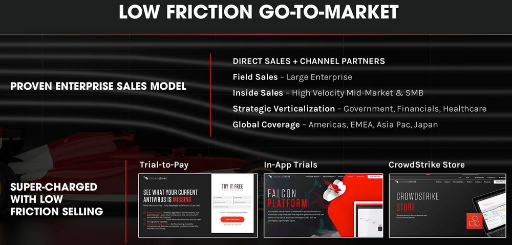 In addition to CRWD's best-in-class sales team, a key pillar of their strategy to efficiently grow market share and leadership is to expand routes to market through their partner ecosystem, trial-to-pay platform, and Crowdstrike store.