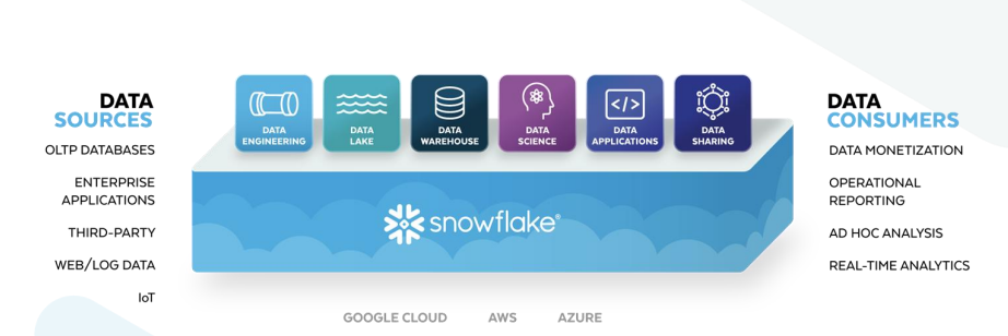 Main product: the Cloud Data Platform. Simply put, it allows their customers to load massive amounts of data from various sources into a central "data warehouse", which is a type of database optimized for efficient data analysis. Customers are then able to use data analytics & visualization tools like SQL or other integrations like Tableau or Looker that Snowflake offers.