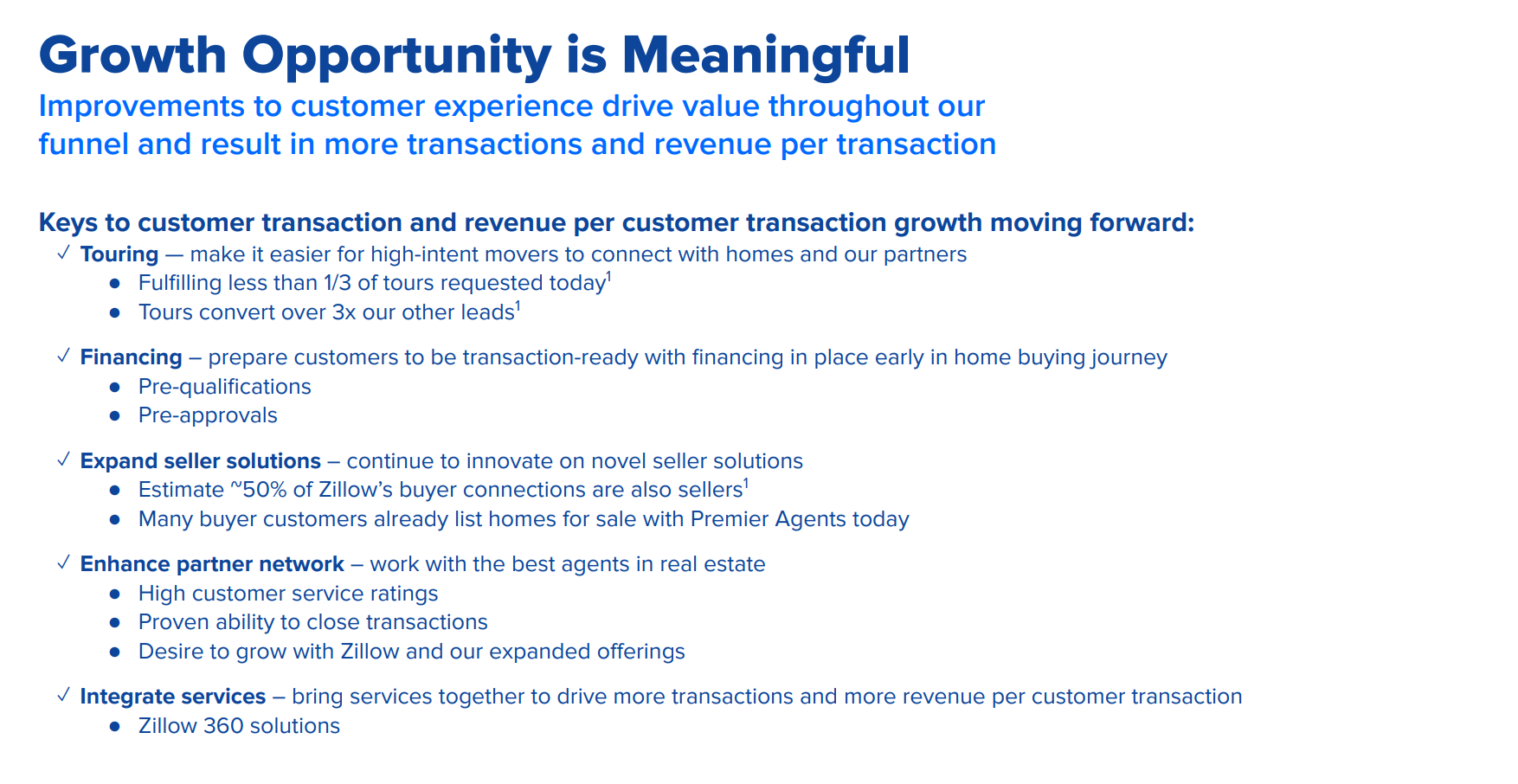 - The gradual transition to Flex performance-based pricing model will increase Zillow's take rate on customer transactions and increase overall revenue in higher transaction value zip codes