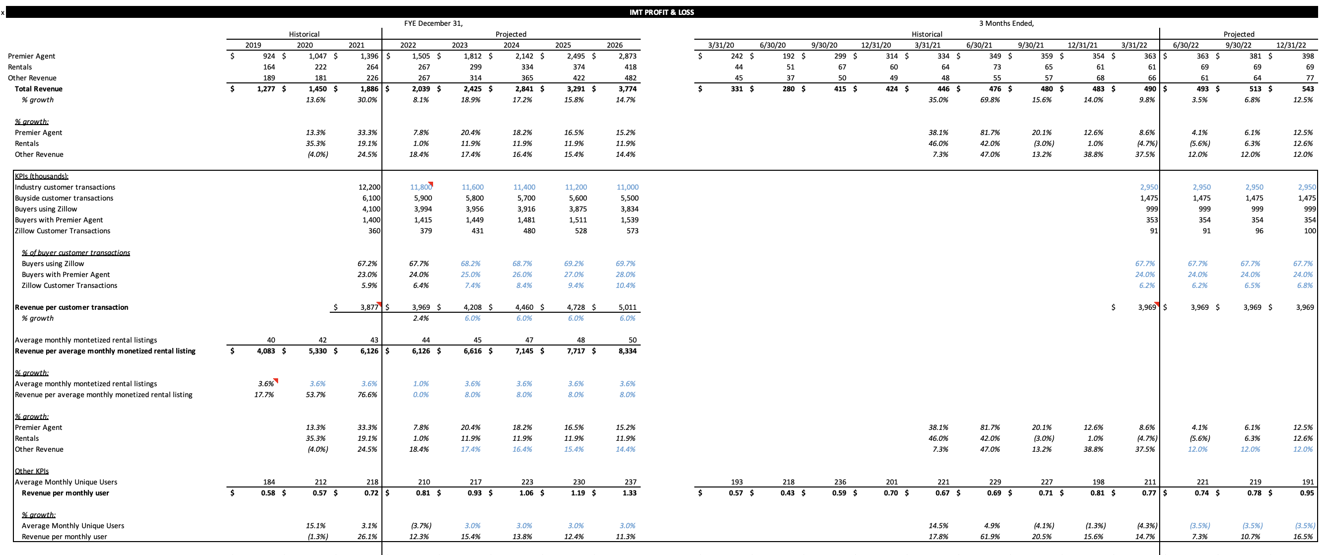 On a go-forward basis, Zillow is a best-in-class, highly profitable business in a large under-monetized market. The stock has been underappreciated following the iBuying fiasco and expectations for their core IMT business have been stagnant presenting a unique investment opportunity.