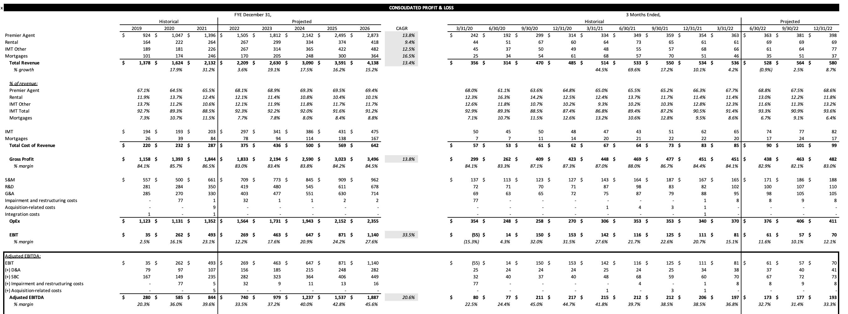 As a result, Zillow’s best-in-class product will drive incremental customers to the platform and increase the proportion of users ultimately transacting (conversion ratio). The conversion ratio is particularly important for agents and brokers advertising on Zillow as the higher the conversion ratio the more willing an agent or broker is to pay for that lead. As the platform with the highest conversion ratio, Zillow will win incremental advertising spend and add to its already sizable advertising revenue. The Street has a perception that growth has stalled after a step function increase in IMT revenue in 2021. However, as the de-facto platform for buyers, Zillow will accrue a disproportionate amount of value going forward. The segment is facing extremely tough comps in FY ’22, but IMT remains massively profitable with expected Adj. EBITDA of $786M at a 38.8% margin.